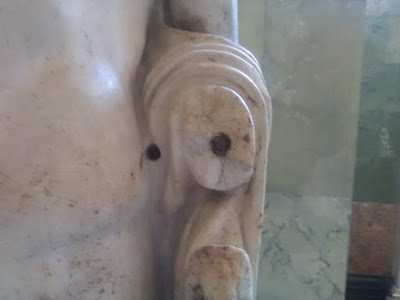 Да, внутри самая что ни на есть арматура. Туда она могла попасть только двумя путями. Первый: был сделан остов, а потом залит раствором, имитирующий мрамор, и второй: когда рука отломалась, арматуру вставили, предварительно просверлив. Если с первым вариантом все понятно – обычная железо-монолитная конструкция, то второй обсудим.
